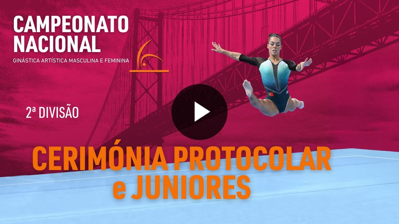Descobre quem são as campeãs nacionais de iniciadas e juvenis da 2ª Divisão na cerimónia protocolar. Porém, a ação da Ginástica Artística Feminina continua a competição das juniores.