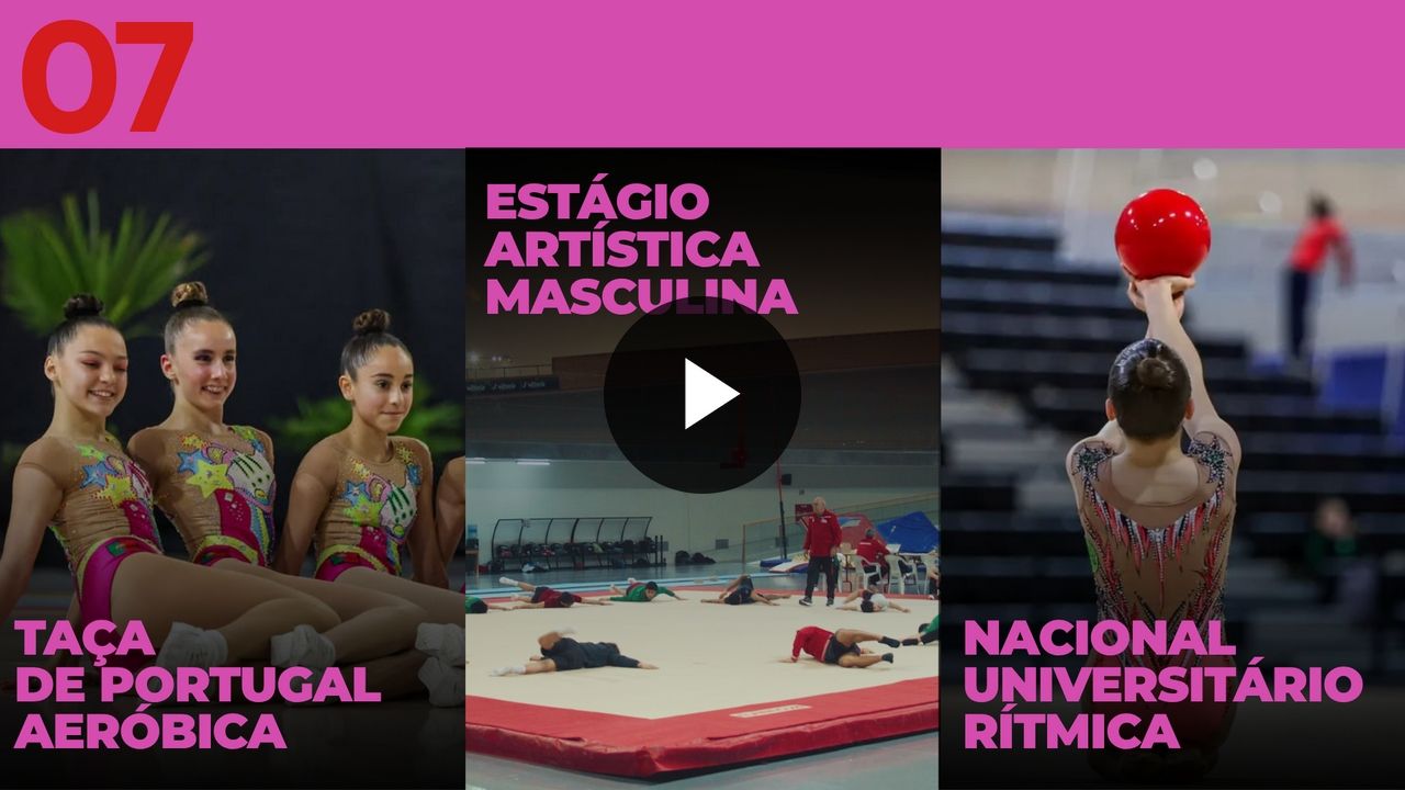 A Ginástica Rítmica fez história com o 1.º Campeonato Nacional Universitário e nós estivemos lá para conhecer as ginastas e as reações à estreia. Na Taça de Portugal de Ginástica Aeróbica, descobrimos o impacto das novas regras, que marcam uma viragem nas exigências da disciplina. De olhos no Europeu, acompanhámos o estágio da Seleção Nacional de Ginástica Artística Masculina para perceber os objetivos da época.
